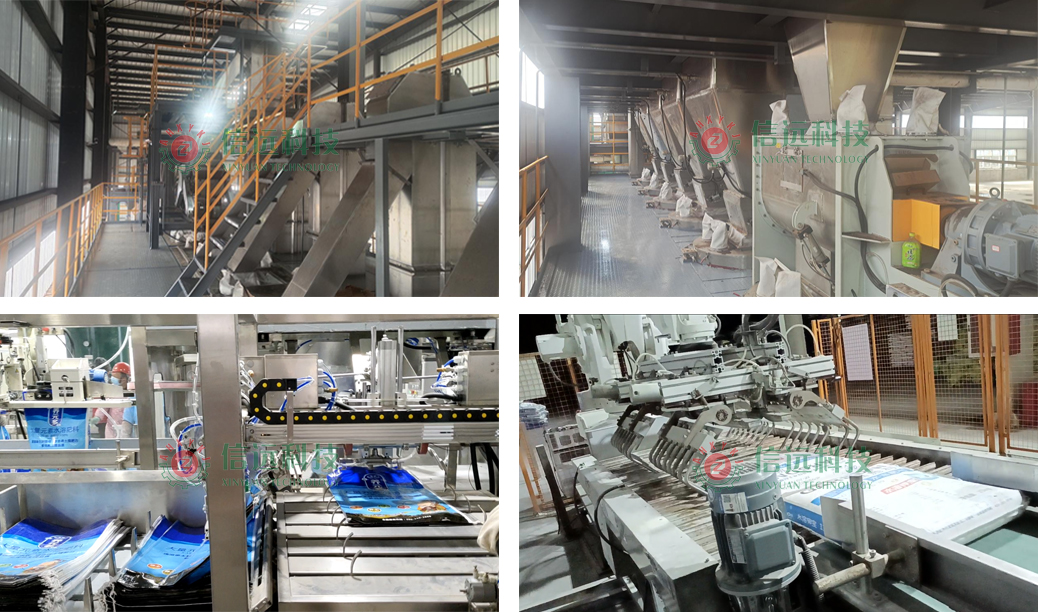 信遠(yuǎn)科技為廣大肥料行業(yè)客戶推薦的這套年產(chǎn)2-5萬噸的固體粉劑水溶肥設(shè)備配置方案,適用于充填容量為5-50kg的編織袋、PP/PE袋,可以包裝大量元素水溶肥、中量元素水溶肥、微量元素水溶肥、含氨基酸水溶肥、含腐植酸水溶肥、含黃腐酸鉀水溶肥等不同配方的固體粉劑水溶肥產(chǎn)品。該套方案從前端的配料工段到后端的碼垛工段均采用了全自動(dòng)化的設(shè)備系統(tǒng),在批量化的流水線作業(yè)中,提高了生產(chǎn)效率,穩(wěn)定了產(chǎn)品質(zhì)量,降低了生產(chǎn)成本,縮短了生產(chǎn)周期,保證了生產(chǎn)的均衡性和產(chǎn)品的標(biāo)準(zhǔn)化。