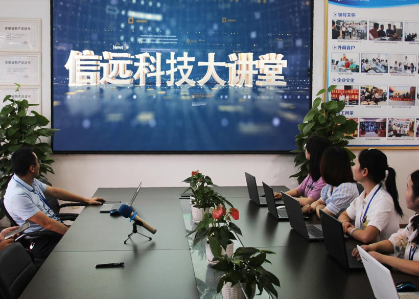 9時20分,隨著開播10秒倒計時結束,董事長倪總宣布《信遠科技大講堂》正式開播。頓時恢弘大氣的三維片頭躍入眼簾,現(xiàn)場掌聲雷動,現(xiàn)場的各位同事紛紛祝賀開播順利!同時,負責多媒體推廣的同事們現(xiàn)場在各大互聯(lián)網(wǎng)視頻平臺上進行了同步上線發(fā)布。