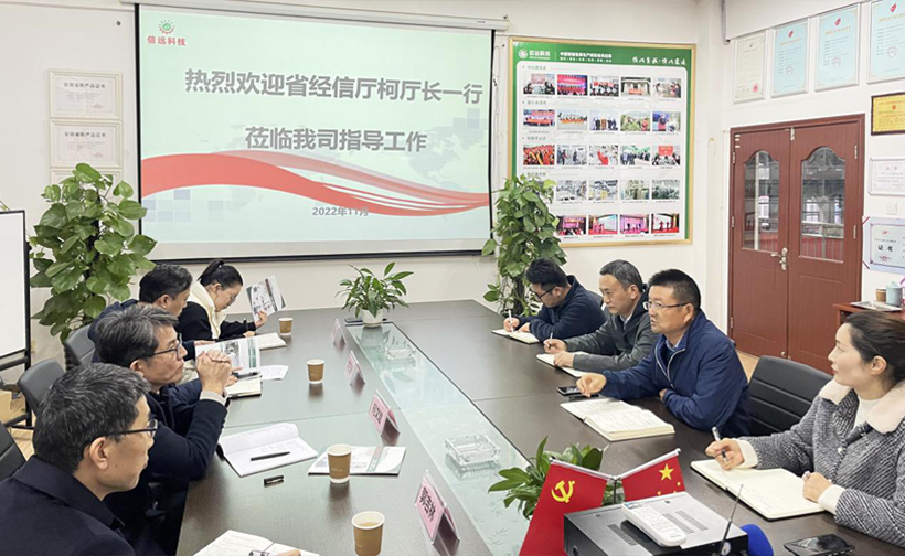 11月22日,安徽省經(jīng)信廳黨組成員、副廳長(zhǎng)柯文斌,省經(jīng)信廳工業(yè)互聯(lián)網(wǎng)處副處長(zhǎng)劉三新, 合肥市經(jīng)信局工業(yè)互聯(lián)網(wǎng)處處長(zhǎng)郭吉林,省經(jīng)信廳工業(yè)互聯(lián)網(wǎng)四級(jí)主任科員汪沁紫一行來(lái)到安徽信遠(yuǎn)包裝科技有限公司進(jìn)行專(zhuān)題調(diào)研。信遠(yuǎn)科技董事長(zhǎng)倪合青及公司相關(guān)領(lǐng)導(dǎo)熱情接待了柯廳長(zhǎng)一行。
