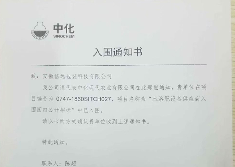 熱烈慶祝我司入圍世界五百?gòu)?qiáng)第98位的中化現(xiàn)代農(nóng)業(yè)水溶肥設(shè)備指定供應(yīng)商