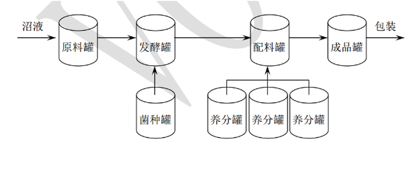 微生物發(fā)酵工藝主要分為5道工序。1貯料,豬場糞便與污水經(jīng)預(yù)處理(破碎)后送入原料罐,貯藏1-2d后送入發(fā)酵罐;2接種發(fā)酵,料液進(jìn)入發(fā)酵罐,接種特定有益生物,并伴隨充分的攪拌混合,物料在發(fā)酵罐中停留2-4d后送入配料罐;3養(yǎng)分配料,為使肥料品質(zhì)符合國家標(biāo)準(zhǔn),需按嚴(yán)格的工藝程序向物料中添加養(yǎng)分;4貯料,添加養(yǎng)分后的物體送入成品罐,貯藏1-2d后送入包裝罐;5包裝,對成品肥料進(jìn)行自動計量包裝。