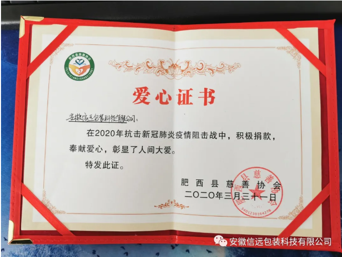 2020年春節(jié),突襲而來的新型冠狀病毒感染肺炎疫情牽動著所有中國人的心,引發(fā)了社會各界強烈關(guān)注。一方有難,八方支援。安徽信遠作為肥料、獸藥、飼料、調(diào)料、食品行業(yè)自動配料混合包裝成套生產(chǎn)線的領(lǐng)頭企業(yè),不忘使命,勇于擔當,積極向中國抗疫前線提供實力支援。2020年2月,公司及全體職工積極彰顯愛心共累計捐款6萬多元用于全力支援新型冠狀病毒肺炎防控以及開展相關(guān)的救助工作,為打贏這場沒有硝煙的戰(zhàn)爭貢獻企業(yè)的一份力量。