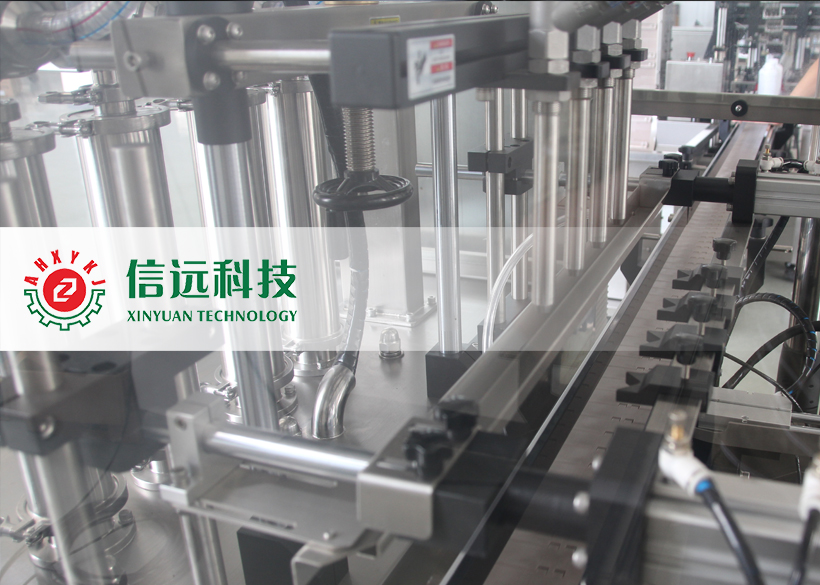 信遠科技瓶裝液體全自動灌裝機組,由理瓶機、灌裝機、上蓋/旋蓋機和貼標(biāo)噴碼機組成。可以灌裝單瓶容量在50-1000ml范圍之間的液體物料,生產(chǎn)企業(yè)可以根據(jù)自己的需要,選擇不同型號的灌裝機和配套輔機。這套機組設(shè)備采用不銹鋼材質(zhì)設(shè)計制造,適用于食品、化工、醫(yī)藥等行業(yè)不帶氣體的流體、半流體物料的計量灌裝,具有自動完成理瓶、進瓶、定位、灌裝、出瓶、上蓋、旋蓋、鋁箔封口、貼標(biāo)、噴碼等一系列功能。