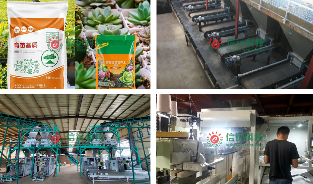 信遠(yuǎn)科技育苗基質(zhì)生產(chǎn)線的生產(chǎn)流程:首先,把配方原料進(jìn)行預(yù)處理生產(chǎn),然后按照質(zhì)量配比進(jìn)行動(dòng)態(tài)配料,經(jīng)過篩分輸送至混合機(jī)攪拌均勻,之后通過輸送機(jī)連續(xù)供料給重袋全自動(dòng)包裝機(jī)工段,自動(dòng)完成取袋、上袋、套袋、夾袋、稱重、充填和縫包作業(yè)。包裝好的成品袋在輸送過程中,自動(dòng)完成倒包、振實(shí)、壓平等理包整形作業(yè),最后由機(jī)器人進(jìn)行碼垛。包裝碼垛設(shè)備可以根據(jù)客戶產(chǎn)能產(chǎn)量的實(shí)際情況進(jìn)行配置,如果產(chǎn)能產(chǎn)量不大的話,可以配置半自動(dòng)包裝機(jī),由人工輔助套袋、導(dǎo)袋縫包和搬運(yùn)碼垛入庫。