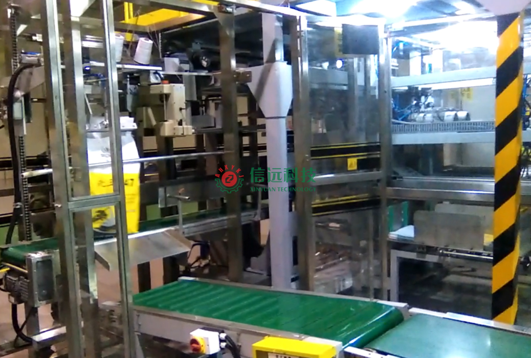 信遠科技全自動重袋二次包裝生產線,由小袋包裝機、雙層傾斜輸送機、高速輸送機、計數(shù)理包機、編織袋全自動包裝機、縫包機、產品輸送機,碼垛機器人等設備組成。可以實現(xiàn)從散裝物料小包裝到編織袋重袋包裝的全自動化作業(yè),節(jié)約了人力、物力及財力的投入,為客戶減少生產成本,也提高了生產效率,該機組廣泛用于種子、食鹽、肥料、洗衣粉等顆粒或粉狀產品的袋中袋包裝。