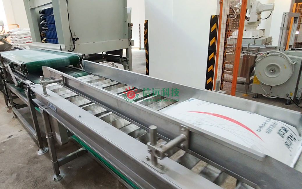 我們先講水溶肥生產(chǎn)線的理包輸送系統(tǒng),該系統(tǒng)可以在輸送過程中,自動完成理包整形,是一套為終端碼垛提供平整料袋的自動化輸送線。該線由倒包輸送機、爬坡輸送機、彎道輸送機、振實輸送機、壓包輸送機、緩存輸送機、抓袋輸送機、噴碼機等組成,輸送速度快、料袋整形效果好。各種輸送機主體結(jié)構(gòu)采用不銹鋼材質(zhì)制造,扎實耐用,穩(wěn)定性好,便于維護。