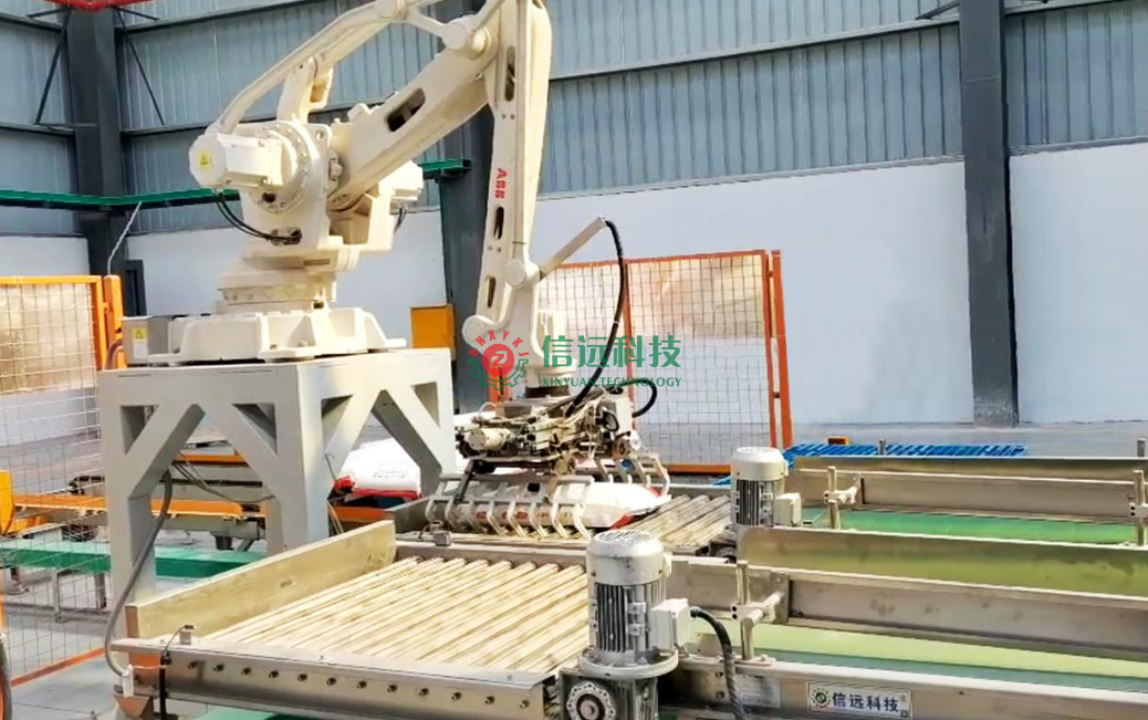 我們再來講一下碼垛機器人,大家都知道,碼垛機器人是一種高新技術產(chǎn)品,是生產(chǎn)線終端碼垛系統(tǒng)的關鍵設備,我們今天推薦的是機械臂式碼垛機器人,這種機器人可以按照設定的編組方式和層數(shù),自動完成各種料袋的碼垛作業(yè)。搬運靈活性好、效率高,垛型緊密整齊,特別是對不同規(guī)格產(chǎn)品的適應性比較高,為無人化生產(chǎn)現(xiàn)場提供了先進的智能化支持。