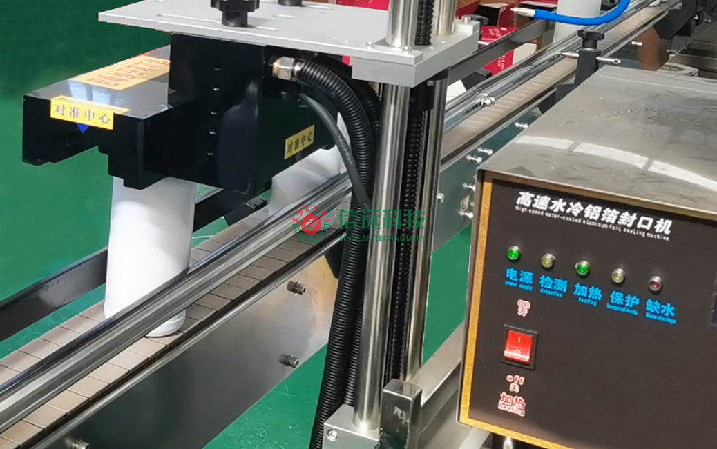 在完成灌裝環(huán)節(jié)之后,要對出來的瓶子進行上蓋,今天我們介紹的是一種提升式全自動上蓋機,該機由儲蓋倉、理蓋器、出蓋口三個主要部分組成。儲蓋倉內(nèi)裝有一定數(shù)量的瓶蓋,在振動電機的作用下,瓶蓋通過鏈板從低處輸送到高處的理蓋器中,理蓋器上裝有檢測開關,當瓶蓋消耗到一定程度時,檢測開關發(fā)出信號,啟動理蓋器上蓋出蓋。該上蓋機主體結構采用不銹鋼材料制造,與旋蓋機配套使用,適用于塑料蓋、鋁質(zhì)蓋、金屬蓋等各種瓶蓋,自動區(qū)別瓶蓋正反面,無蓋自動上蓋,有蓋自動停止,與生產(chǎn)線自動同步出蓋。