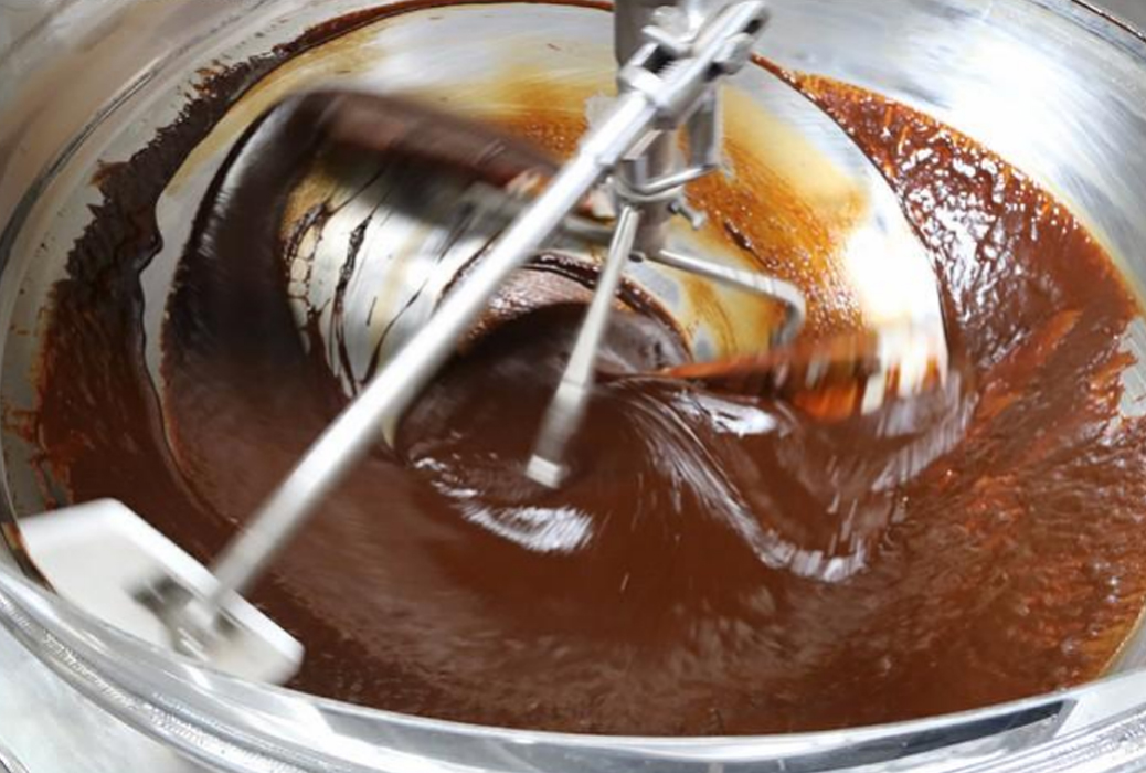 該設(shè)備主要由鍋體、架體、攪拌系統(tǒng)、加熱系統(tǒng)、調(diào)速傳動(dòng)裝置、攪拌軸、鍋體翻轉(zhuǎn)系統(tǒng)等組成,采用加厚304不銹鋼板模壓成型的橢圓形的不銹鋼鍋體,采用電磁加熱形式,攪拌方式采用特殊的傾斜式傳動(dòng),使用的行星式攪拌器與鍋體充分接觸,實(shí)現(xiàn)傳動(dòng)公轉(zhuǎn)與自轉(zhuǎn)的不整數(shù)傳動(dòng)比,使鍋內(nèi)無攪拌死角。使用先進(jìn)的傳動(dòng)與密封結(jié)構(gòu),使傳動(dòng)部分與鍋內(nèi)潔凈、衛(wèi)生。采用變頻調(diào)速動(dòng)力,運(yùn)行更平穩(wěn)。采用液壓升降,翻鍋運(yùn)料,免拆裝攪拌器,節(jié)省人力,降低勞動(dòng)強(qiáng)度,是性能優(yōu)良的食品加工設(shè)備。